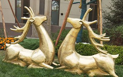 純銅色玻璃鋼仿銅梅花鹿雕塑